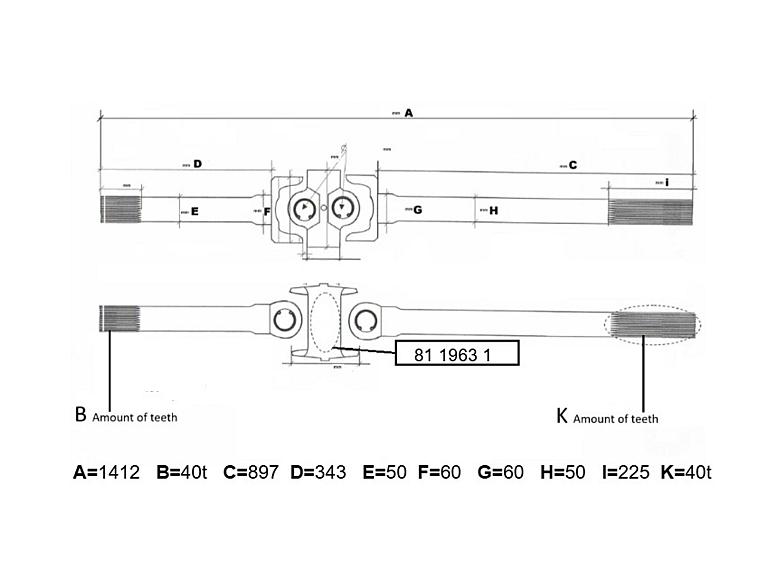 Drive shaft for Liebherr LTM 1400-7.1 axle 3
